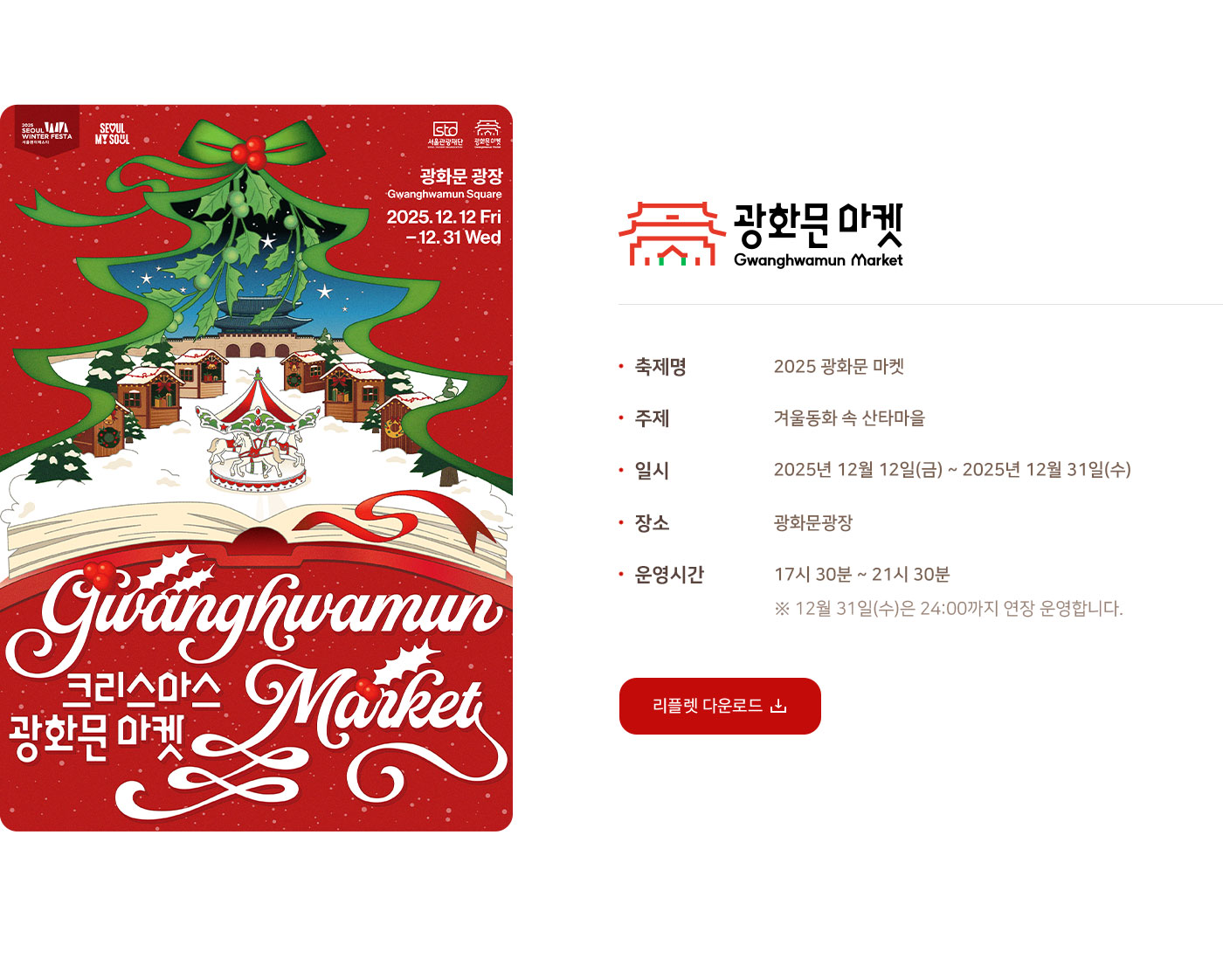 서울에서 연말 분위기를 가볍게 즐기고 싶다면 광화문 크리스마스 마켓은 충분히 선택할 만한 행사입니다.