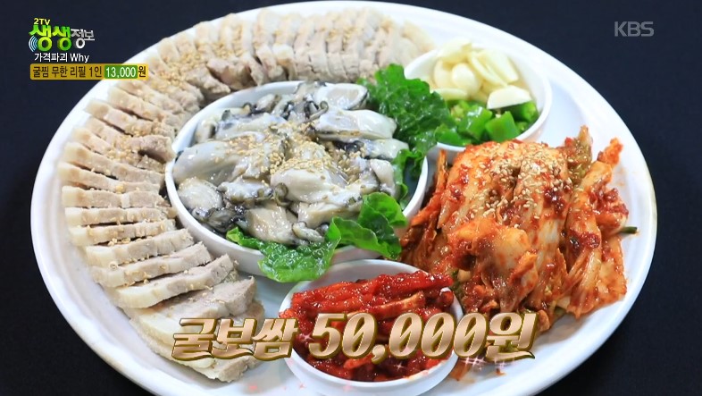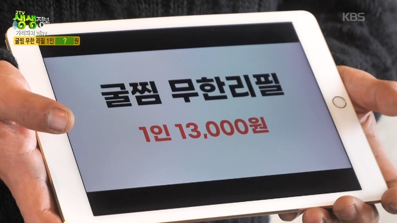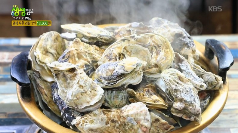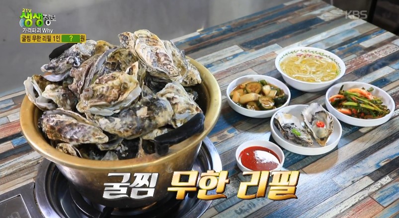 방송 소개 포인트로 가장 많이 언급되는 건 굴찜 무한리필 1인 13,000원입니다.