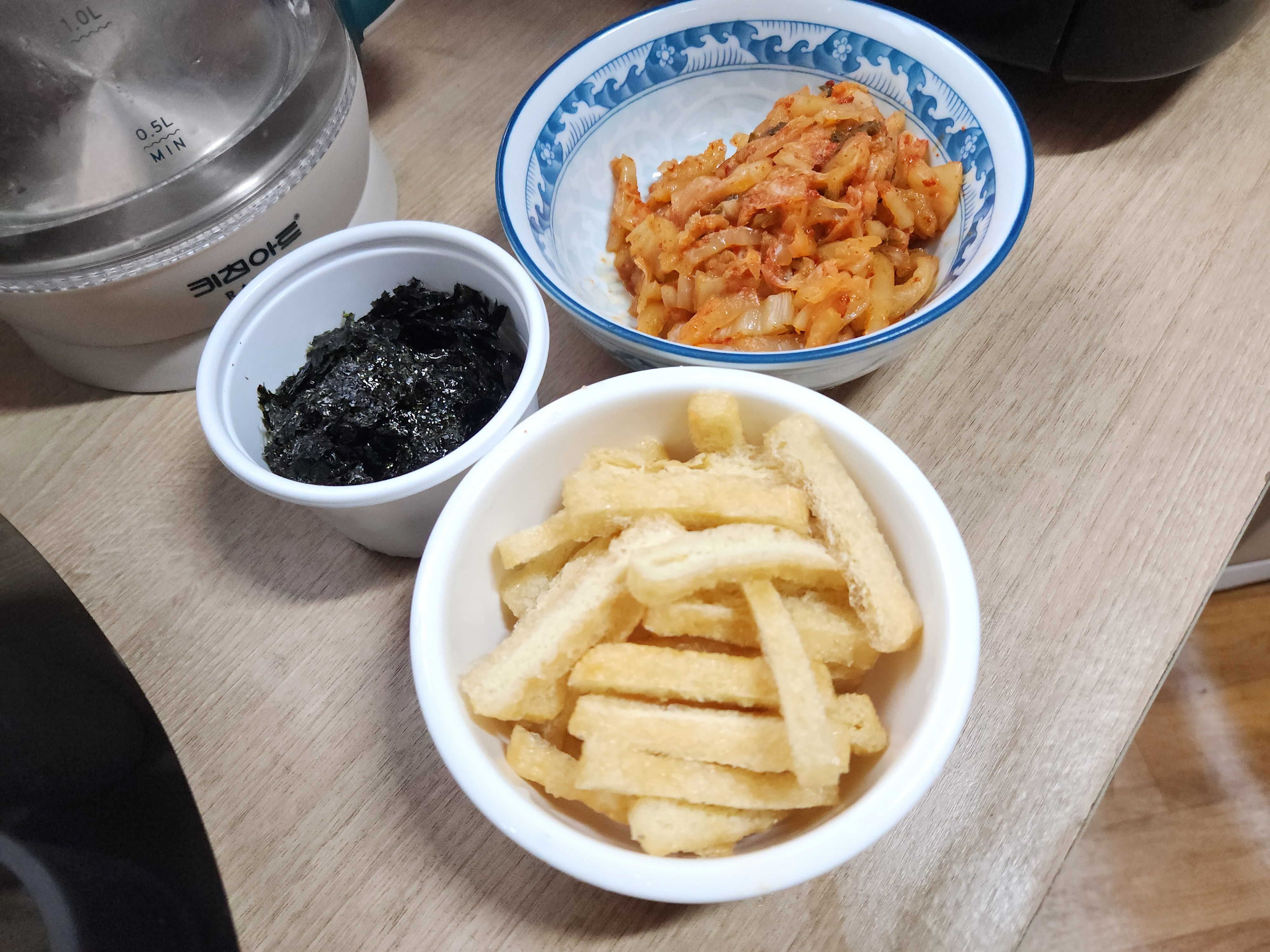유부, 김가루, 다진김치 올려주세요