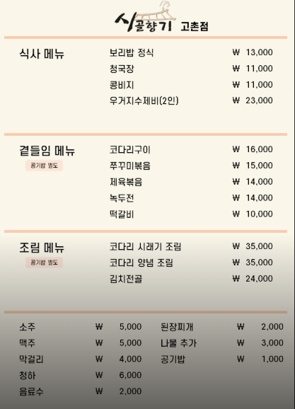 3. 메뉴 선택 고민: 보리밥부터 코다리구이까지!