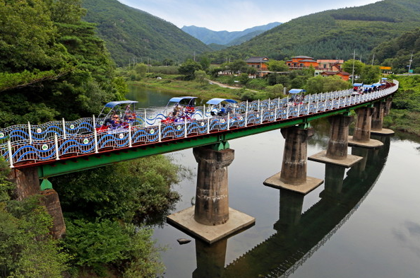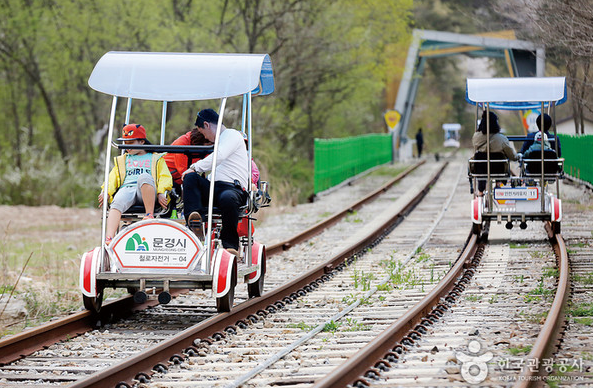 문경 팔경 중 제 1경으로 꼽히는 진남교반과 영강변을 따라 이어지는 철로 위를 천천히 달리며 시원한 바람을 맞으며 주변의 산세와 풍경을 감상하고 힐링을 할 수 있는 이색체험입니다.
