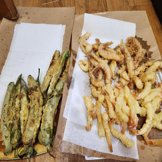 1. 튀김반죽비율 1:1로 하시고 섞을 때 대충 섞어주세요.