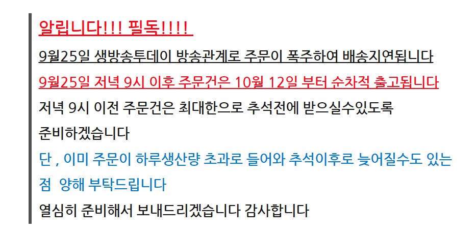 * 대량 주문 (답례품, 행사 등): 최소 1~2주 전에 매장으로 문의하는 것이 좋습니다.