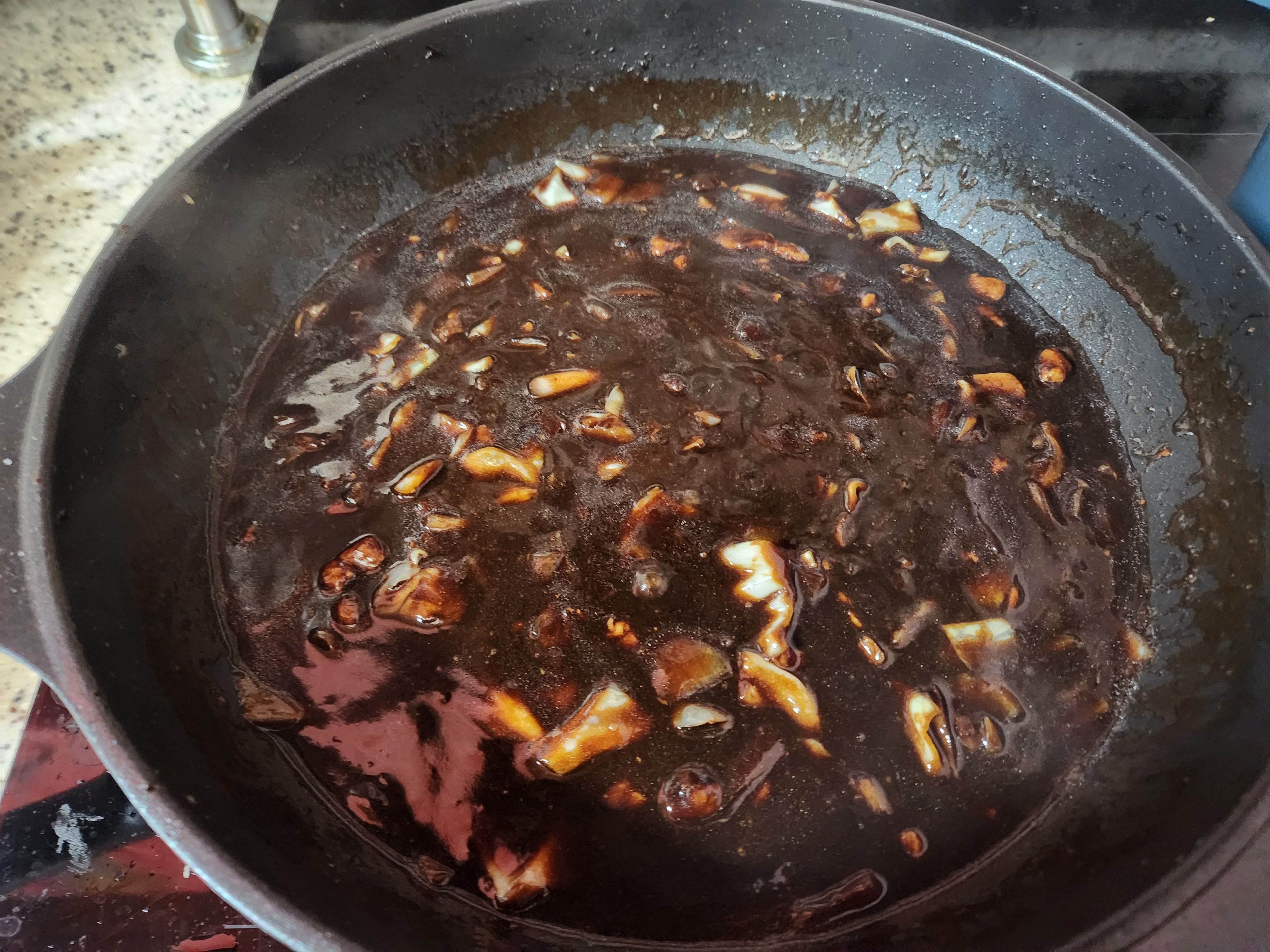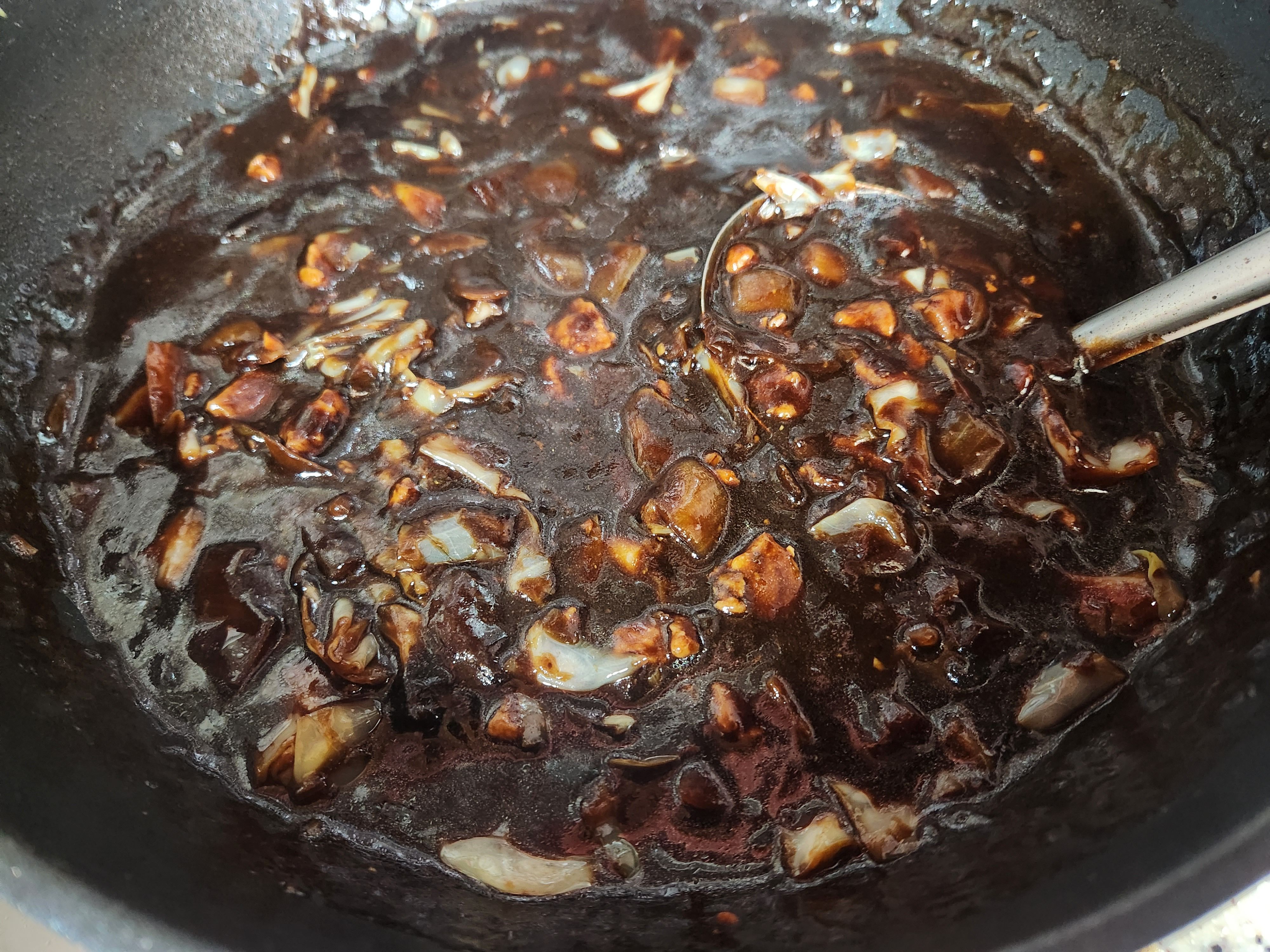 5. 간장을 넣고 같이 볶다가 춘장을 넣어주세요. 설탕2스푼도 넣고 더 볶아주세요