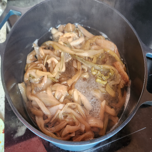 5. 느타리버섯, 표고버섯, 토란줄기, 고사리를 넣어줍니다.