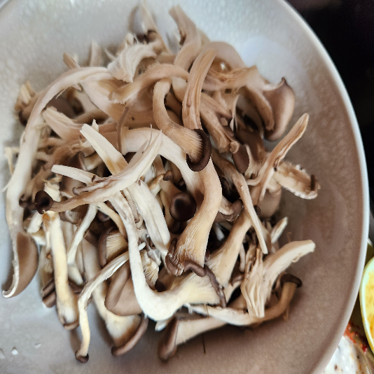 4. 느타리버섯 한 줌을 손으로 찢어줍니다(1/2팩)