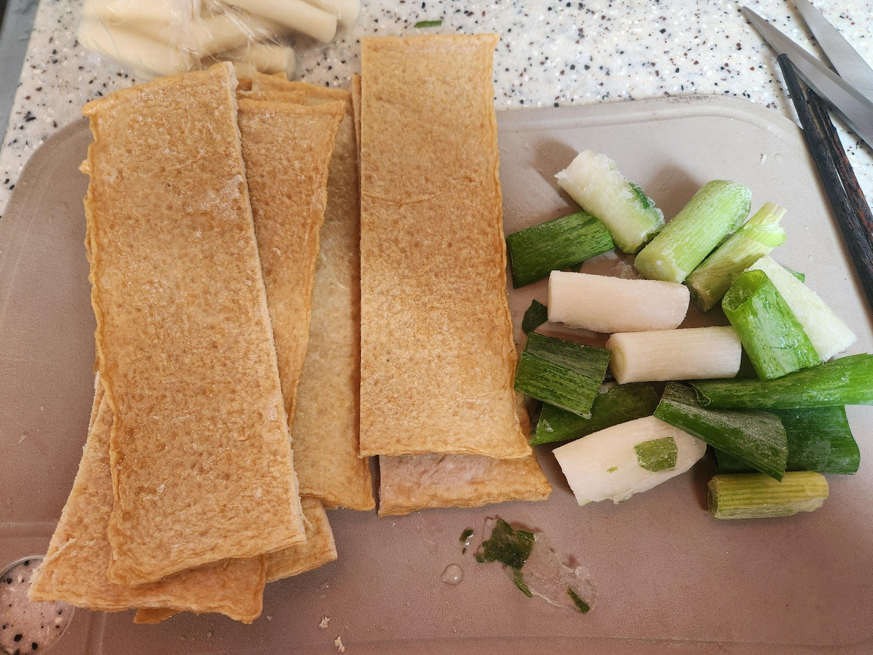 아까 잘라둔 어묵, 대파, 물을 넣어주세요.