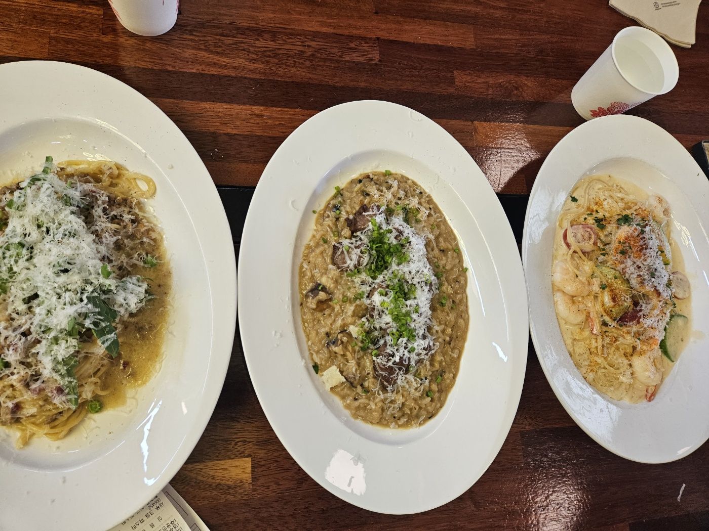 메뉴는 리소토, 피자, 파스타, 샐러드류이고요. 저희는 골고루 시켰습니다.
