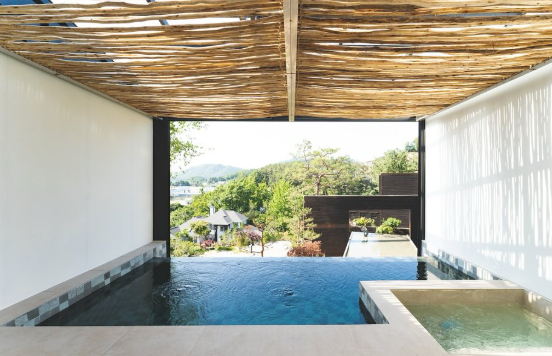 * 특징: 전 객실 온수풀 또는 히노끼 자쿠지 완비